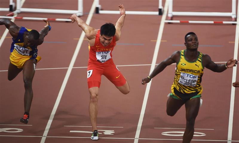 2015年8月27日,在北京国家体育场“鸟巢”进行的2015年国际田联世界田径锦标赛男子110米栏半决赛中,中国选手谢文骏以13秒39完赛,无缘决赛。\n 新华社记者王昊飞摄