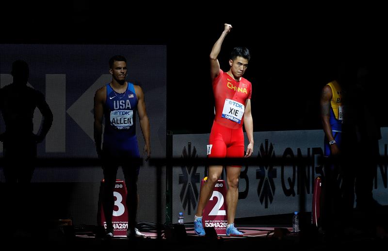 2019年10月,在卡塔尔多哈举行的2019国际田联世界田径锦标赛男子110米栏决赛中,中国选手谢文骏以13秒29的成绩获得第四名。\n 新华社记者王丽莉摄